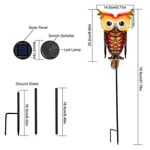 【DESIGN INTERESSANTE】 ▪Bellissima e intelligente lampada solare a forma di gufo, adorna e protegge il nostro cortile al buio.▪Le sue ali possono essere chiuse o aperte. Divertimento aggiuntivo per l'illuminazione.▪Siamo inoltre in grado di regolare l'altezza del picchetto di messa a terra in base alle proprie esigenze