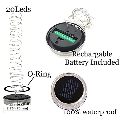 Lampada solare, lampada solare Mason Jar, luce a LED, luce solare, per esterni, giardino, decorazione natalizia, vasetti impermeabili da giardino (bianco 2 m + bottiglia)