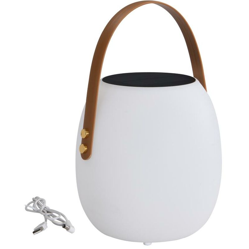 Consegna Davanti a casa tua . BASTELICA è una bella lampada a LED da posare da esterni, ricaricabile grazie all'energia del sole. È l'accessorio perfetto per illuminare e abbellire il tuo terrazzo, balcone o giardino! Questa lampada da tavolo a LED offre un'illuminazione piacevole, perfetta per creare un'atmosfera accogliente per le tue serate all'esterno. È progettata per resistere alle intemperie ed è resistente alla pioggia e agli schizzi. Oltre all'aspetto estetico, la nostra lampada da esterno può cambiare colore per un'esperienza di illuminazione unica e viene fornita con una maniglia per trasportarla e appenderla dove vuoi. Caratteristiche Colore: Bianco, Marrone Materiale: Polietilene Indice di protezione: IP44 Con LED Colore dei LED: Bianco, Multicolore Tipo di ordine: Telecomando Tipo di connessione: Presa USB Distanza di rilevamento: No Potenza luminosa: 120 lumens Tipo di alimentazione: Solare Autonomia (ore): 4 Con o senza accessorio: Con accessorio Uso
