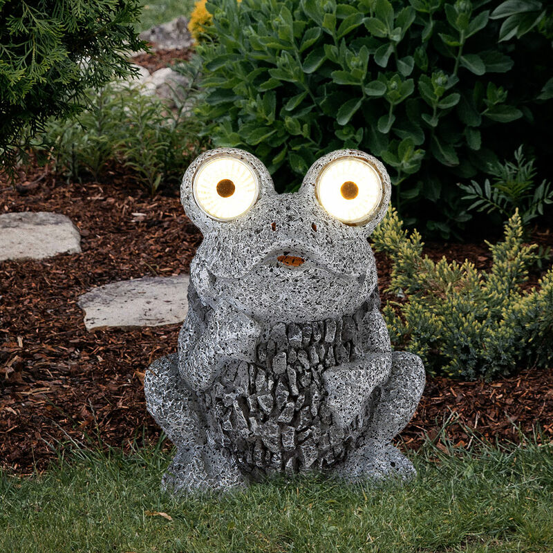 Descrizione Questa rana solare delizierà qualsiasi giardino al tramonto con i suoi bellissimi occhi illuminati. Questa lampada solare può essere utilizzata in molti modi: vicino allo stagno, sul balcone o in giardino. Con la batteria inclusa, questa lampada solare decorativa brilla fino a 6 ore. Grazie a IP44, questa lampada solare è ideale per l'uso esterno. Una lampadina LED di alta qualità è inclusa nella fornitura! dettagli • Tipo: luce solare • Materiale: plastica • Tema: Rana • Grado di protezione: IP44 • Interruttore ON/OFF • Pacco batterie • Dimensioni lunghezza x larghezza x altezza in cm: 17x14x21 • Attacco: LED • Lampadina inclusa: sì • Lampadine: 2x 0,06W 3V