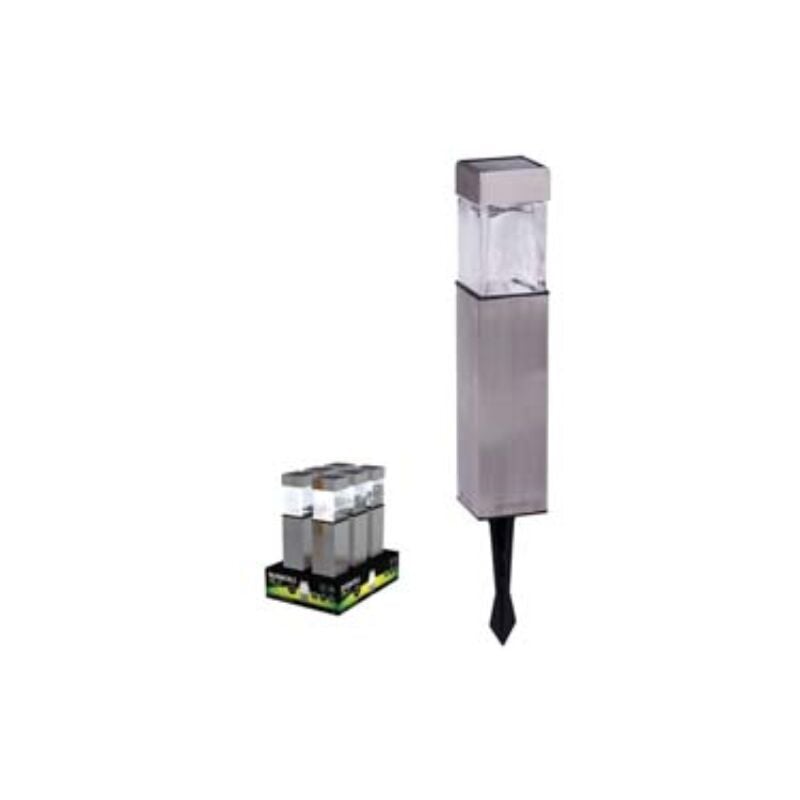 Mm.58x58x396,5h. - 5 lumen materiale metallo/vetro - limentazione con 1 batteria aa ricaricabile - alimentazione solare - 8 ore di autonomia - grado di protezione ip44 Categoria merceologica: Illuminazione e componenti - Elettricità e illuminazione - Lampade solari