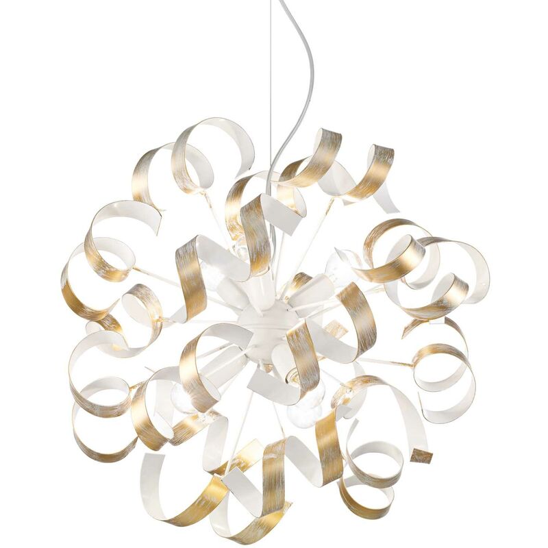 Lampada a sospensione oro D 530 x H min 730 - max 1150 mm Caratteristiche: Lampadina inclusa=No Kit fissaggio=No Attacco lampada=E14 Volt=220-240 V AC Watt=E14 max 6 x 40W Finitura=oro Materiale=Metallo Dimensioni= D 530 x H min 730 / max 1150 mm