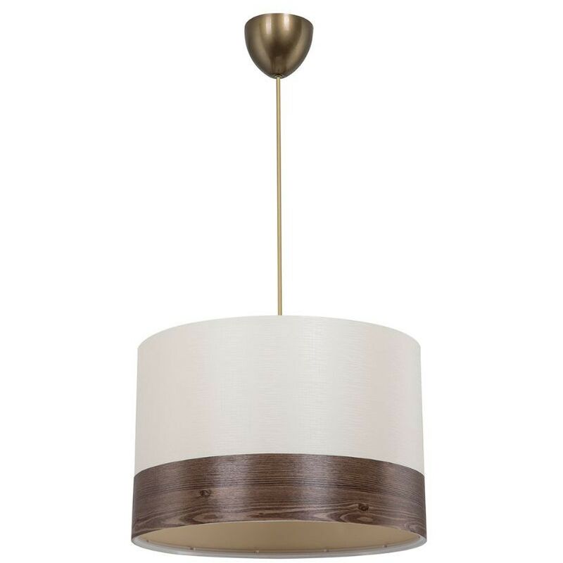 Lampada a sospensione Alfina tessuto bianco fascia effetto legno ASZ1668 Caratteristiche: Materiale tessuto. Colore bianco con fascia effetto legno. Altezza 73 cm. Larghezza 36 cm. Altezza paralume 24 cm. Attacco lampadina 1 x E27 Watt. Facile da pulire
