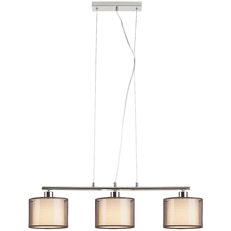 Lampada a sospensione Anastasia in metallo cromato tessile / marrone B: 80cm H: 100cm Dimensioni in mm: Altezza: 1000, Larghezza: 800, peso in kg: 2.1 lampada inclusa: NO tipo di lampadina / versione: E27 informazioni sulla lampada / potenza massima: E27 3x 40W MAX classe (a ++ a e): a ++ - e di riduzione luminosità: YES protezione: IP20 materiale rivestimento: metallo materiale tonalità di vetro: tessile Colore: cromo / marrone
