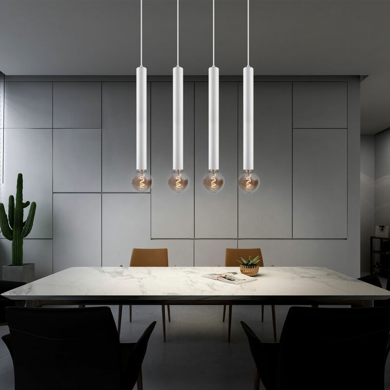 Descrizione Senza tempo, semplice eppure pieno di carattere! Le moderne lampade a filamento LED danno alla lampada a sospensione quel qualcosa in più e donano a ogni stanza un fascino speciale. Sia in cucina che in soggiorno: la lampada è versatile e si abbina facilmente a diversi stili di arredamento. In bianco opaco, la lampada crea accenti luminosi che migliorano visivamente lo spazio abitativo. Le lampadine non sono incluse nella fornitura. Particolare lampada • Tipo di lampada: lampada a sospensione • Materiale: metallo • Colore: bianco opaco • Grado di protezione: IP20 • Classe di protezione: 1 • Regolabile in altezza • Lunghezza x larghezza x altezza in cm: 70 x 9 x 150 • Peso: 4,015 kg • Prese: 4x E27 • Lampadina inclusa: No • Potenza della lampada: 4x massimo 10 watt • Tensione: 230V, 50Hz