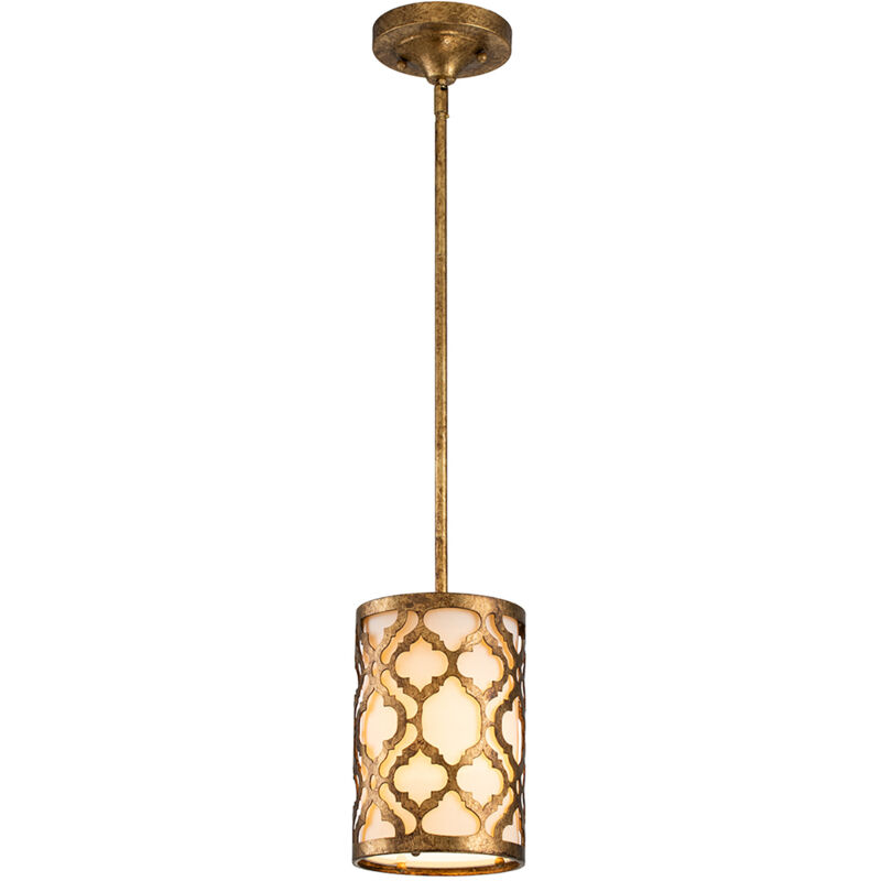 Collezione Arabella IL FASCINO RETRO Mini lampada a sospensione a 1 luce con doppio montaggio. Arabella ha un bellissimo paralume esterno in metallo color oro anticato con un paralume in tessuto di lino color crema e un diffusore in vetro per ammorbidire la luce. Le sospensioni sono dotate di un doppio montaggio a soffitto, che consente di accorciare l'asta per adattarsi a stanze con soffitti bassi. Le applique a mezzaluna sono ideali per stanze compatte e corridoi. Questa gamma è ideale per il retrofit di lampade LED.