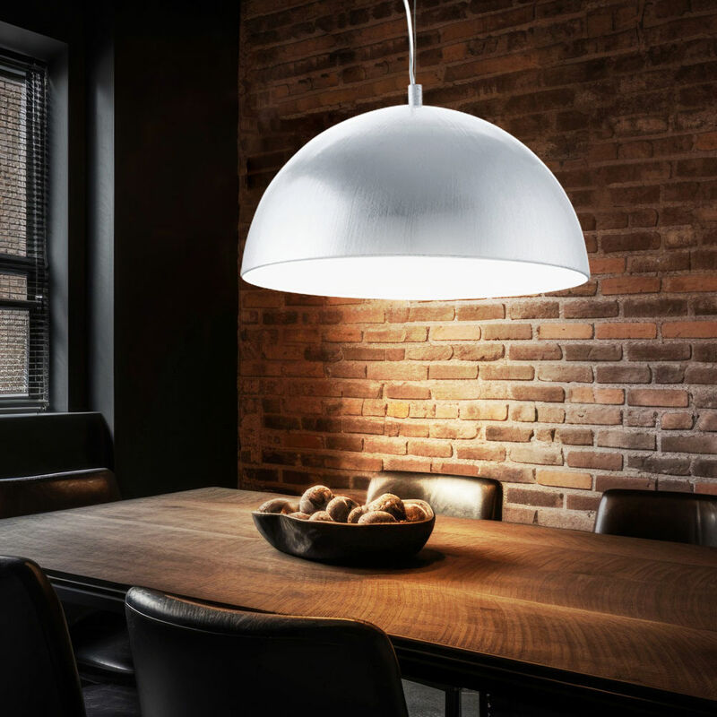 Descrizione Elegante lampada a sospensione per il soggiorno. Il design elegante in semplice argento si integra perfettamente in qualsiasi spazio abitativo immaginabile. La lampadina LED da ben 1380 lumen garantisce un'illuminazione sufficiente e piacevole. Una lampadina LED da 18 watt è installata in modo permanente nella lampada. Lampada dettagli • Tipo di luce: lampada a sospensione • Struttura: acciaio, argento • Paralume: plastica argentata, interno bianco • Grado di protezione: IP20 • Diametro x altezza in cm: 38x110 • Presa: 1x LED • Lampadine incluse: sì (installate in modo permanente) • Potenza lampada: 1x 18 watt • Flusso luminoso: 1x 1380 lumen • Colore della luce: bianco caldo • Tensione operativa: da 220 V a 240 V Dettagli lampadine • Tipo di lampadina: LED • Base: scheda LED • Flusso luminoso: 1380lm (lumen) • Consumo energetico: 18 kWh/1000h • Temperatura colore: 3000K (Kelvin) • Colore della luce: bianco caldo • Consumo energetico nominale: 18 W (watt) • Durata utile