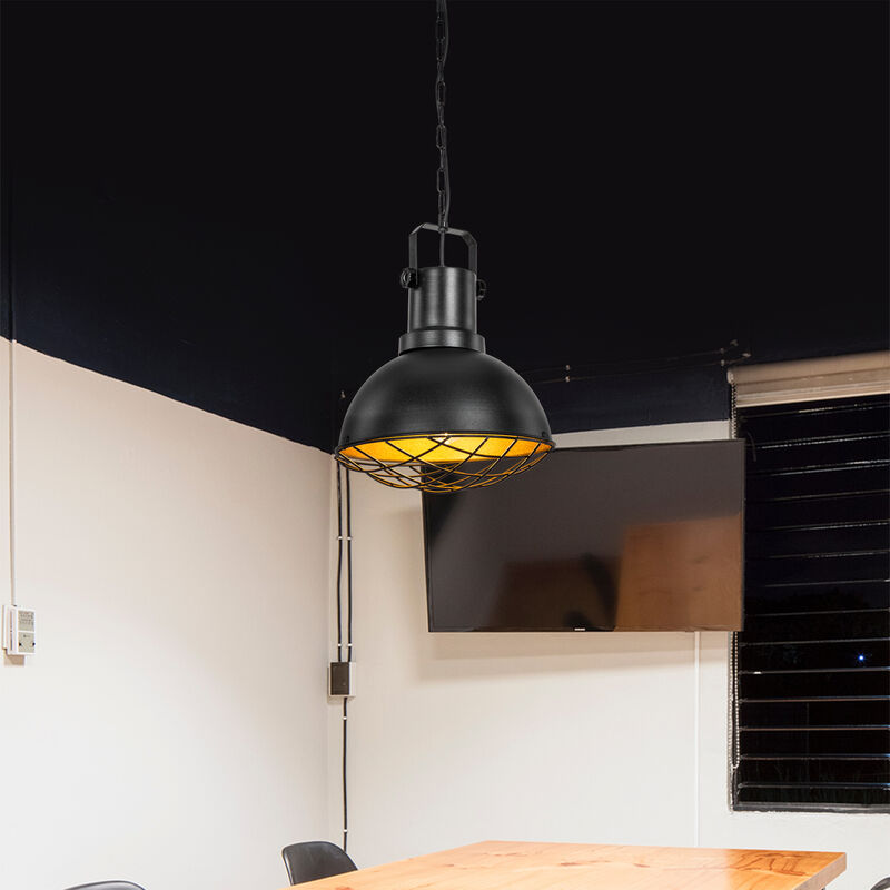 Lampada a sospensione Il modello rappresenta lo stile industriale che si abbina perfettamente ad un arredo moderno prestando personalitá originale all'ambiente. La lampada è ideale per illuminare il tavolo da pranzo. Descrizione: - lampada da soffitto in stile industriale - paralume a mezzo globo con rete di metallo - illumina lo spazio sottostante con luce intensa Dati tecnici: - Attacco lampadina: 1 x E27, max. 20W (lampadina esclusa) - Tensione: 230V, 50Hz - Tipo di interruttore: a muro Materiale: Metallo Colori: Nero / ottone Dimensioni: - Altezza totale: 96 cm - Paralume (AxL): 40 x 31 cm La spedizione include: 1 x Lampada da soffitto [senza lampadina] Prodotto di [lux.pro]