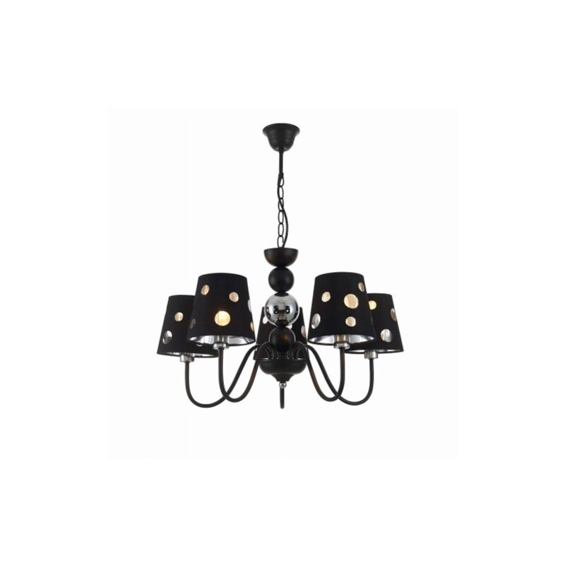Una famiglia di lampade classiche in metallo con paralumi intrecciati disponibili in due versioni colore. La leggerezza del design delle lampade è data dai fori irregolari praticati nei paralumi. Lampada a sospensione nera con cinque punti luce. La lampadina non è inclusa per i prodotti con fonte luminosa esterna Materiale: metallo, tessuto Colore base: nero Altezza: 40 Larghezza: 58 Profondità: 58 Dimensioni (altezza/larghezza/profondità): 40x58x58 Peso (netto): 2,40 LED integrato: No Numero di sorgenti luminose: 5 Include una sorgente luminosa: No Numero di sorgenti x base: 5xE14