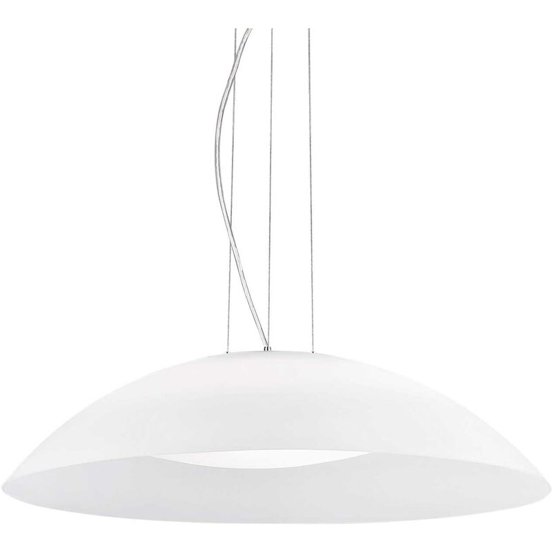Lampada sospensione bianca D640xH440-2190mm Caratteristiche: Lampadina inclusa=No Kit fissaggio=Yes Attacco lampada=E27 Volt=220-240 V AC Watt=E27 max 3 x 60W Materiale=Vetro Dimensioni= D 640 x H min 440 / max 2190 mm