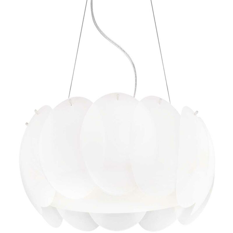 Lampada a sospensione bianco D 440 x H min 460 - max 1200 mm Caratteristiche: Lampadina inclusa=No Kit fissaggio=No Attacco lampada=E27 Volt=220-240 V AC Watt=E27 max 5 x 60W Finitura=bianco Materiale=Vetro Dimensioni= D 440 x H min 460 / max 1200 mm