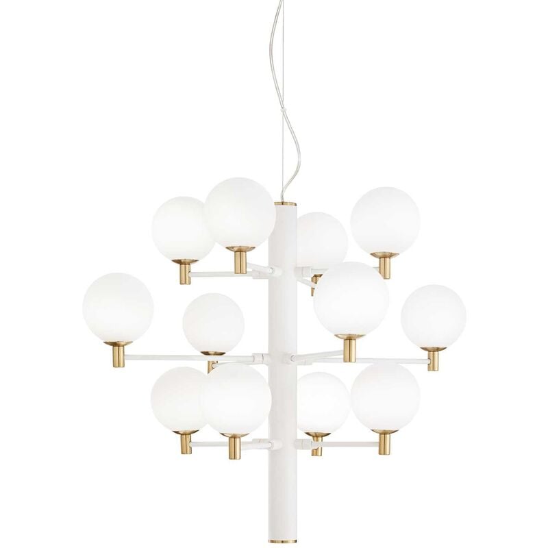 Lampada a sospensione bianco D 710 x H min 840 - max 1725 mm Caratteristiche: Lampadina inclusa=Yes Kit fissaggio=No Attacco lampada=G9 Volt=220-240 V AC Watt=G9 max 12 x 40W Finitura=bianco Colore rosone=bianco Materiale=Metallo,Vetro Dimensioni= D 710 x H min 840 / max 1725 mm