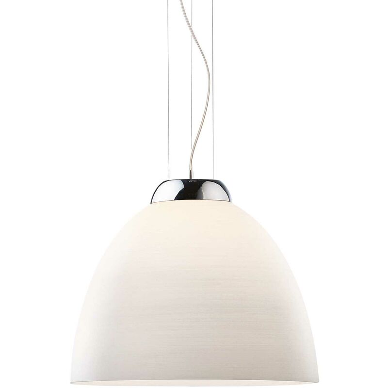 Lampada a sospensione bianco D 400 x H min 610 - max 2360 mm Caratteristiche: Lampadina inclusa=No Kit fissaggio=No Attacco lampada=E27 Volt=220-240 V AC Watt=E27 max 1 x 60W Finitura=bianco Colore rosone=cromo Materiale=Vetro Dimensioni= D 400 x H min 610 / max 2360 mm