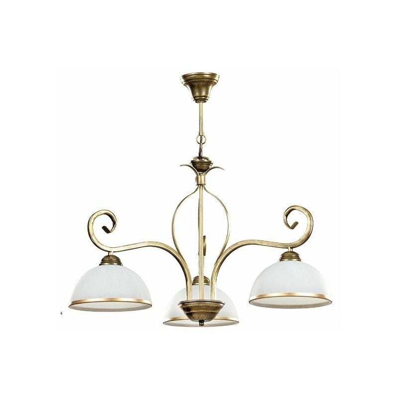 Dettagli del prodotto Materiale: Metallo, vetro Dimensioni: larghezza: 660 mm, profondità di sospensione: 660 mm, lunghezza: 660 mm Attacco: 3x E27 fino a. 60W Classe di protezione dagli spruzzi: IP20 Colore: Oro antico, Bianco, Oro Descrizione del prodotto Elegante plafoniera in oro anticato e bianco;