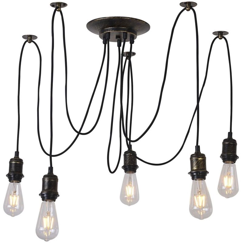 Plafoniera in acciaio billy bronzo antico. Questa elegante lampada è realizzata in acciaio verniciato in bronzo con un tocco antico ed è composta da 5 bracci per lampadine E-27 tappo massimo 40W (non incluso), include rondella per mettere il tulipano. Si tratta di una lampada dal design originale e dal marcato stile retrò, perfetta per arredare qualsiasi tipo di ambiente grazie alla sua grande versatilità. Si consiglia di utilizzare lampadine decorative in stile vintage per esaltare lo stile e la bellezza delle stesse. Misure: Lunghezza massima del cavo 140cm