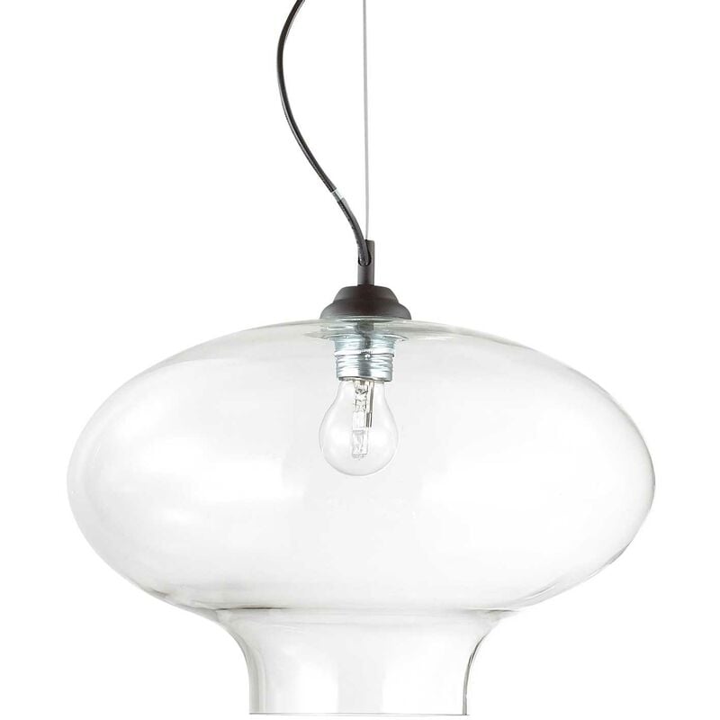 Lampada sospensione Bistro' trasparente D400xH545-2295mm Caratteristiche: Lampadina inclusa=No Kit fissaggio=No Attacco lampada=E27 Volt=220-240 V AC Watt=E27 max 1 x 60W Materiale=Metallo,Vetro Dimensioni= D 400 x H min 545 / max 2295 mm