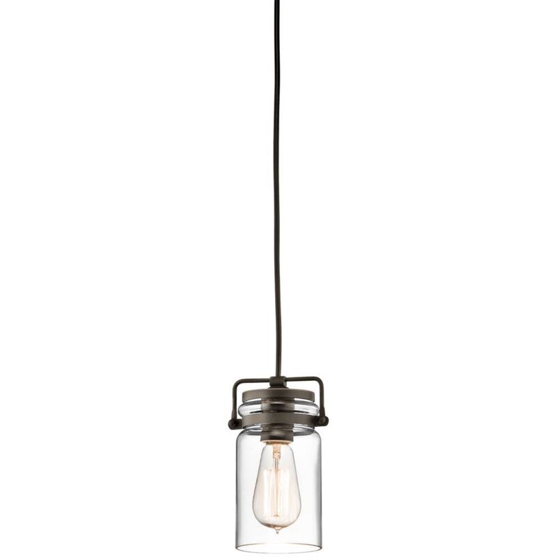 Collezione Brinley STILE VINTAGE, CARATTERE MODERNO Mini lampada a sospensione a 1 luce. Lo stile vintage della collezione Brinley conferisce un carattere moderno alla familiarità e alla comodità dei barattoli da conserva. Utilizzata in gruppo o da sola, la collezione Brinley è un nuovo tocco per la casa, con finiture in nichel spazzolato o bronzo antico.