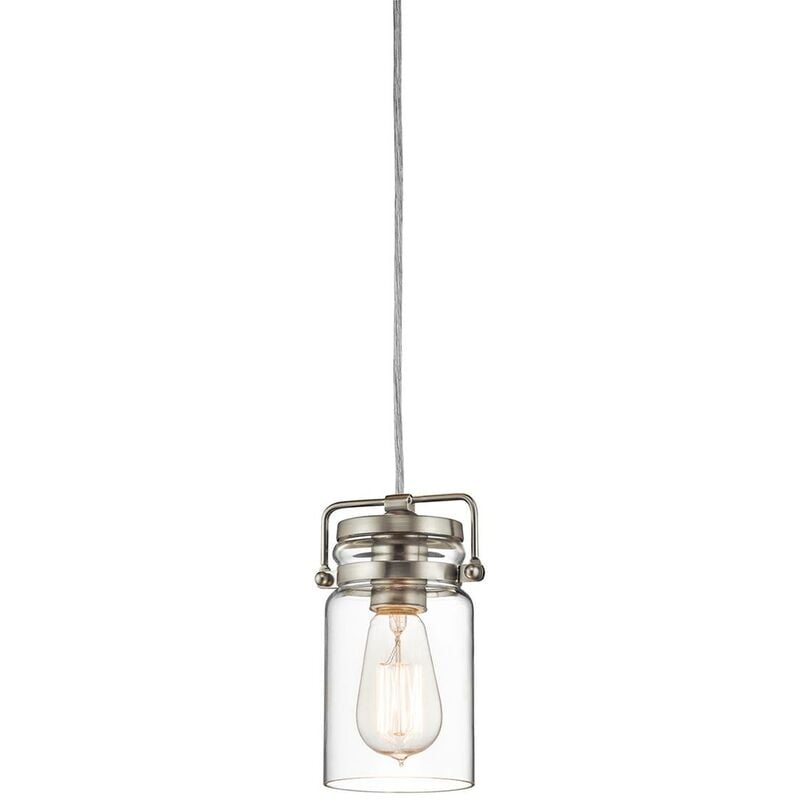 Lampada sospesa Brinley 1xe27 H: 19.7 Ø: 12.1 Dimensioni in mm: Altezza: 197, diametro: 121 peso in kg: 1080 lampada contenuta: no Tipo di lampada/versione: E27 Prestazioni massime in Watt: 60 Dimmbar: No Classe di protezione: ip20 materiale per la casa: acciaio, vetro Colore: nichel spazzolato