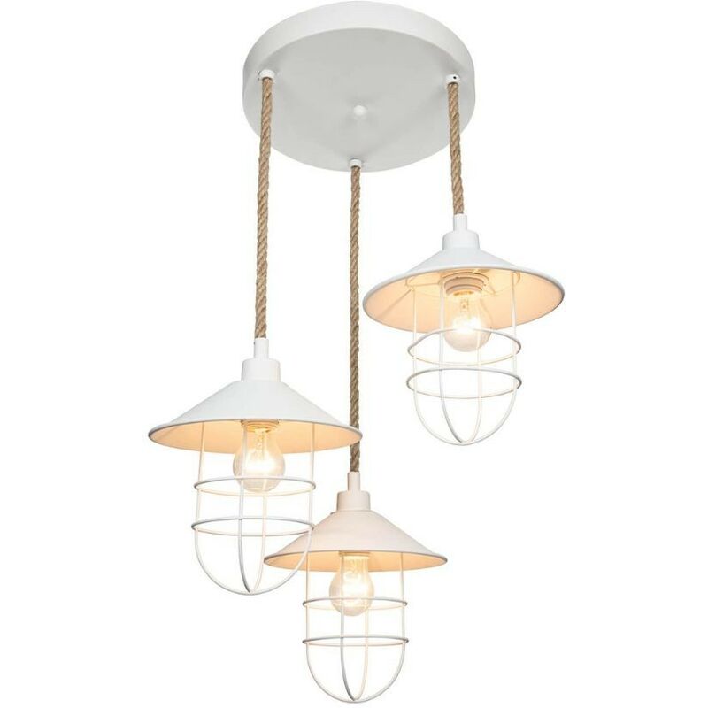 Lampada a sospensione Bulut ASZ0632 3 luci metallo bianco e corda Lampada a sospensione Bulut ASZ0632 3 luci è realizzata in metallo bianco e corda, perfetta per aggiungere un tocco di stile e luminosità al tuo ambiente. Con i suoi dettagli in corda iuta, questa lampada sospesa si distingue per il suo design unico e moderno. Caratteristiche: Materiale: metallo e corda Colore: bianco Dettagli in corda iuta 3 luci Altezza: 90 cm Larghezza: 42 cm Larghezza paralume: 14 cm Altezza paralume: 19 cm Attacco lampadine: 3 x E27 Facile da pulire