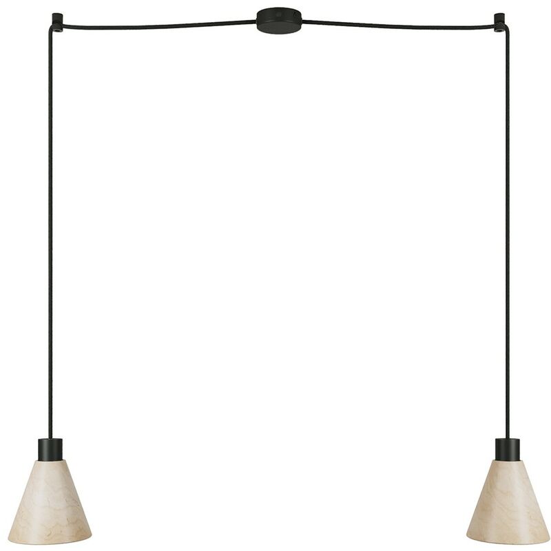 Lasciatevi affascinare da questa lampada a sospensione con doppia caduta, nella quale i paralumi in legno di ontano sono i veri protagonisti. Realizzati artigianalmente in Italia, questi pezzi sono completamente naturali e non trattati: potrete così decidere di utilizzarli con le venature a vista, che esaltano l'unicità di ogni pezzo, oppure personalizzarli con la verniciatura, di un colore che si integra con gli arredi. Questa lampada rappresenta un'armonia perfetta tra legno e metallo. Il paralume in ontano, con la sua forma conica e il design classico lavorato a mano da un tornitore, dà carattere all'intero pezzo, enfatizzando la qualità e l'unicità del Made in Italy. Il mini rosone in metallo, dotato di fori laterali, e i cavi tessili, facilmente fissabili al soffitto grazie ai decentratori compresi, completano il design. Ideale per diversi ambienti, questa lampada non solo arricchisce esteticamente, ma offre anche una luce diretta e precisa. La sua forma è pensata per canalizzare