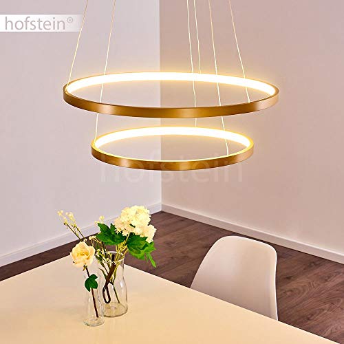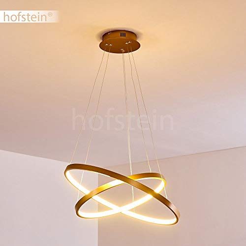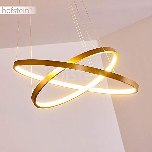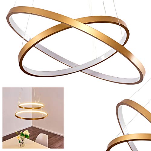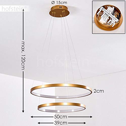 Lampada a sospensione LED Canisteo, lampada a sospensione in oro, lampada a sospensione con anelli regolabili, altezza massima 120 cm, 46 watt, 4828 lumen, 3000 K