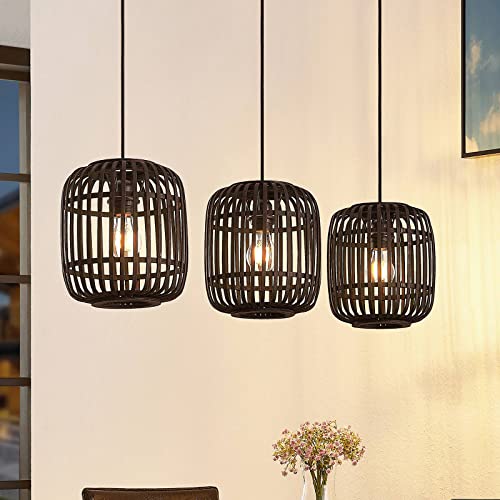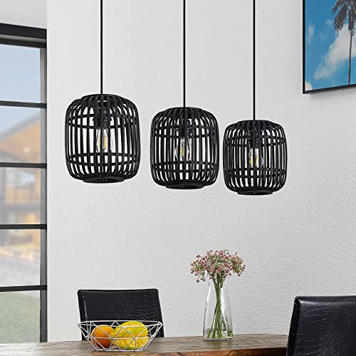 Lampada a sospensione 'Canyana' dimmerabile (Country) colore Nero, in Legno ad es. Soggiorno & Sala da pranzo (3 luci, E27) di Lindby | lampada a sospensione in legno, lampada a sospensione, lampada