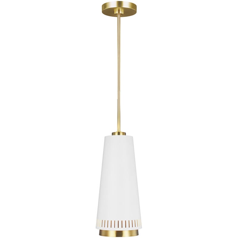 Collezione Carter DETTAGLI TRAFORATI Lampada a sospensione a 1 luce - Stile A - Bianco opaco. Raffinati dettagli traforati sui paralumi conici | Finitura bicolore di bianco opaco e ottone brunito