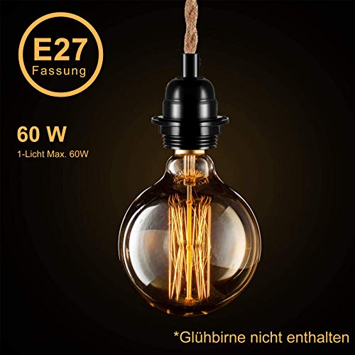 Lampada a sospensione fai da te con cavo in tessuto, 2 x 4.5 m, corda di canapa industriale E27, vintage, cavo per lampada a sospensione con interruttore, tavolo da pranzo, bar