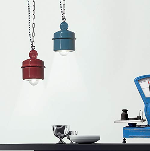 Sospensione in ceramica smaltata. Montatura in metallo verniciato. Regolabile in lunghezza. Disponibile in diversi colori.