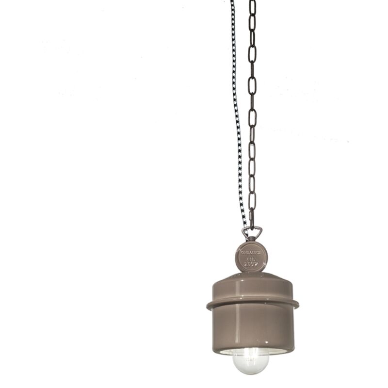 Sospensione OIL realizzata in ceramica smaltata con montatura in metallo verniciato. Cavetto regolabile in lunghezza. Un elemento dal design vintage e originale, installabile in abitazioni come anche in locali pubblici. Lampada a sospensione OIL in ceramica smaltata e montatura in metallo verniciato CARATTERISTICHE Colore: Fango Materiale: Metallo, ceramica Tipologia: Lampada a sospensione Diametro: 17 cm Altezza max: 152 cm Dimmerabile: NO Illuminazione: 1xE27 (L' attacco E27 permette di installare lampadine a LED, fluorescenti o alogene) Lampadine non incluse Input: 220-230V