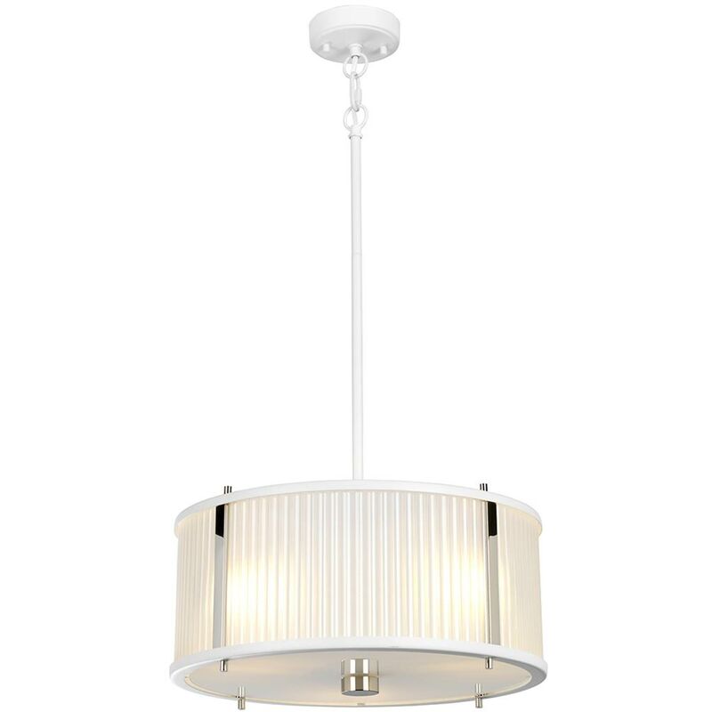 Lampada sospesa Corona 3xe27 H: 19.3 Ø: 40 Dimensioni in mm: Altezza: 193, diametro: 400 peso in kg: 6260 lampada contenuta: No Tipo di lampada/versione: E27 Prestazioni massime in Watt: 60 Dimmbar: No Classe di protezione: ip20 materiale per la casa: Steel, Mattglas Colore: Satin White Painted / Nichel lucido