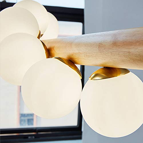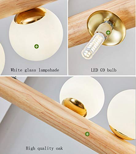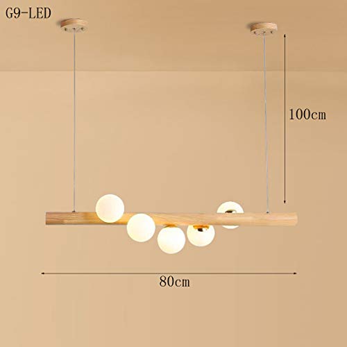 LED lampada a sospensione creativo legno quercia moderna salotto sala da pranzo cucina sala studio lampadario rettangolare rotondo bianco paralume in vetro plafoniera regolabile, L80cm Luce calda