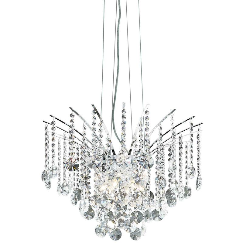 Lampada a sospensione cromo D 555 x H min 550 - max 1100 mm Caratteristiche: Lampadina inclusa=Yes Kit fissaggio=No Attacco lampada=G9 Volt=220-240 V AC Watt=G9 max 6 x 40W Finitura=cromo Colore rosone=cromo Materiale=Metallo,Vetro Dimensioni= D 555 x H min 550 / max 1100 mm