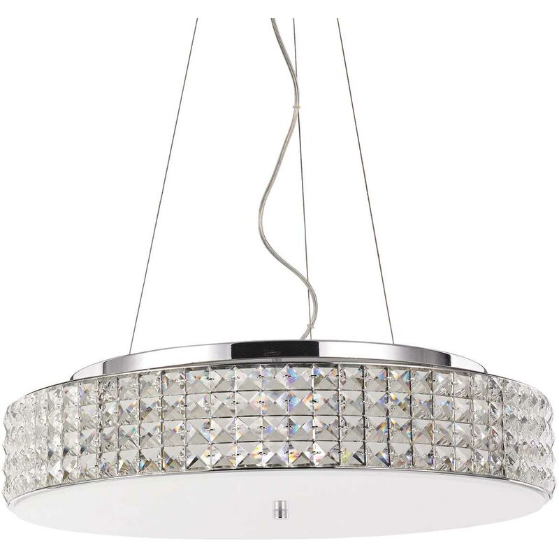 Lampada a sospensione cromo D 500 x H min 375 - max 2125 mm Caratteristiche: Lampadina inclusa=Yes Kit fissaggio=No Attacco lampada=G9 Volt=220-240 V AC Watt=G9 max 9 x 40W Finitura=cromo Colore rosone=cromo Materiale=Metallo,Vetro Dimensioni= D 500 x H min 375 / max 2125 mm