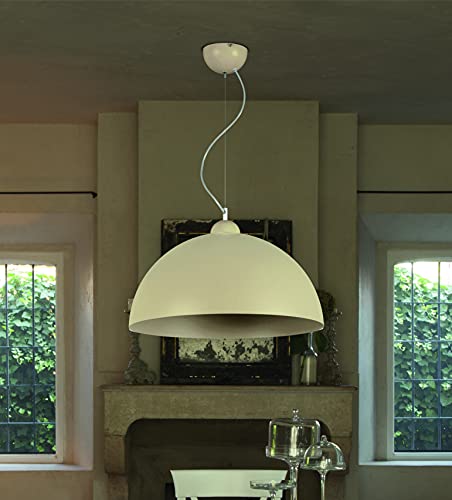 Lampada a sospensione cupola moderna Luna col. sabbia in metallo verniciato a polveri, stile minimal industriale con colore neutro attacco E27 LED per cucina, camera, soggiorno. Diametro 50 cm.