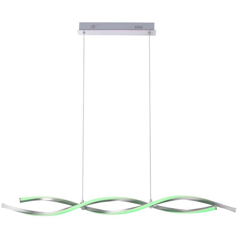 Descrizione La lampada a sospensione LED LOLAsmart-SWING attira meravigliosamente l'attenzione nella tua casa: la lampada a sospensione affascina con il suo aspetto moderno e il design ondulato alla moda. La lampada da soffitto curva viene fornita con il telecomando a infrarossi LOLA, pronto per l'uso immediato. Ciò significa che puoi controllare individualmente la temperatura del colore della luce dal bianco caldo (2.700 Kelvin) al bianco luce diurna (5.000 Kelvin) e simulare i colori della luce di una routine quotidiana. Oltre alla regolazione della luce diurna e alla regolazione della luminosità, la sorgente luminosa può anche essere commutata nei colori RGB, il che rende possibile ricreare modalità di luce individuali come un caminetto o un tramonto. L'impostazione desiderata può essere salvata utilizzando la funzione di memoria. Metti abilmente un accento nella tua zona giorno con la sospensione e lasciati ispirare dal look moderno e dall'impressionante esperienza di