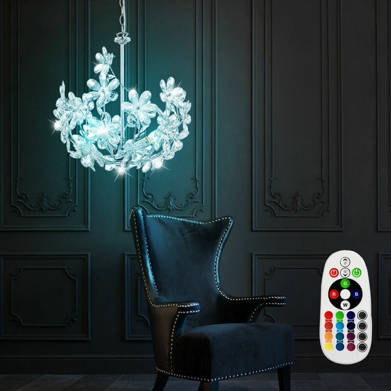 Descrizione Nobile lampada a sospensione con design floreale. Questa lampada porta glamour nel tuo salotto. La scintillante montatura cromata termina in un emisfero di disegni floreali in acrilico traslucido. Questo look inconfondibile aggiunge il tocco finale a qualsiasi soggiorno. Sono incluse tre lampadine LED con telecomando per luce bianca e controllo RGB. dettagli • Tipo di apparecchio: lampada a sospensione • Materiale: cromo • Paralume: acrilico trasparente • Dimensioni PxH in cm: 38x135 • Presa: 3x E14 • Potenza della lampada: 3x 4,8 watt • Flusso luminoso: 3x 470 lumen • Colore della luce: bianco caldo • Telecomando: solo per lampade • Alimentazione: da 220V a 240V, da 50Hz a 60Hz Dettagli lampadine • Tipo di sorgente luminosa: sorgente luminosa LED RGB • Attacco: E14 • Forma: sfera • Grado di protezione: IP20 • Colore della luce: RGB modalità colore (16 colori selezionabili) • Flusso luminoso: 470 lumen • Consumo energetico nominale: 4,8 watt • Risparmio energetico: 83%