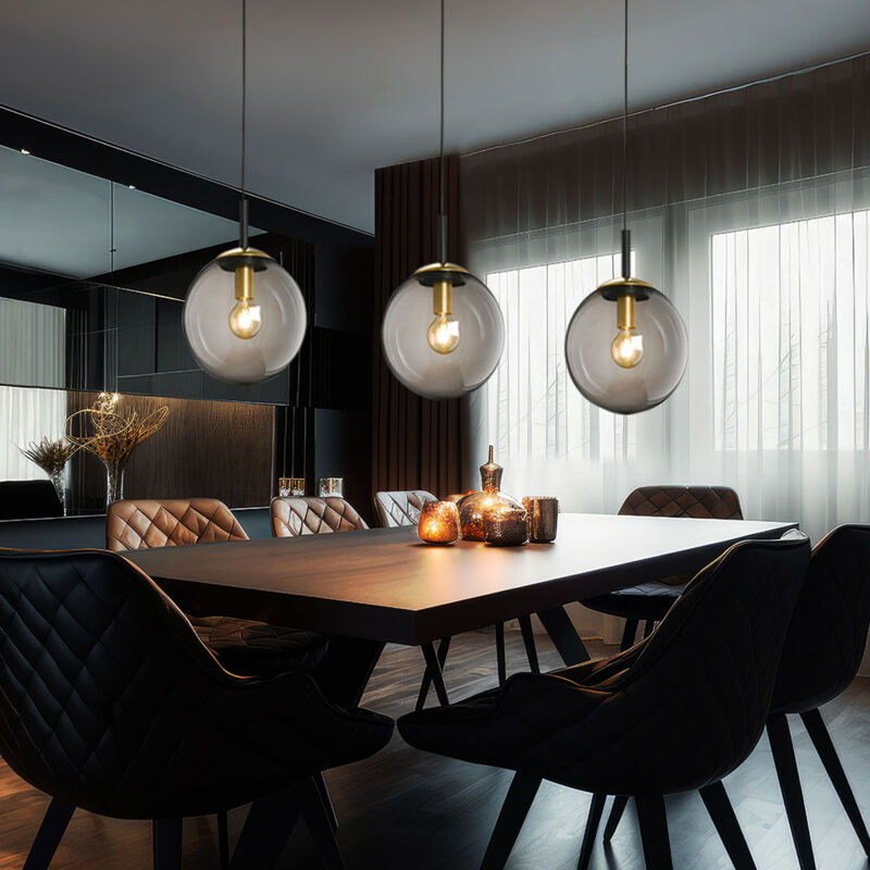 Descrizione La nuova voglia di luce unita all'arte del vetro. Queste luci amano le cose rotonde. La trasparenza color fumo trasforma la luce in qualcosa di molto speciale. Crea ispirazioni luminose magicamente belle con bellezze senza tempo. Non solo illuminano la tua stanza con una luce soffusa, ma creano anche dei veri e propri eye-catcher. Il design conferisce a queste luci un aspetto raffinato ed elegante. Questa barra a 3 luci, ad esempio, è un punto culminante sopra il tavolo da pranzo. Questa lampada preferita galleggia in modo molto decorativo sopra il tavolo e mette abilmente la decorazione della tua tavola nella giusta luce. Quando luci e arredi si armonizzano, un sogno di design diventa realtà e dona alla stanza intimità e carattere. Con accenti in nero opaco/ottone antico opaco e vetro fumé decorativo, questa gamma elegante è il modo semplice ed elegante per evidenziare l'illuminazione nella tua stanza. Le lampadine non sono comprese nella fornitura. Lampada dettagli