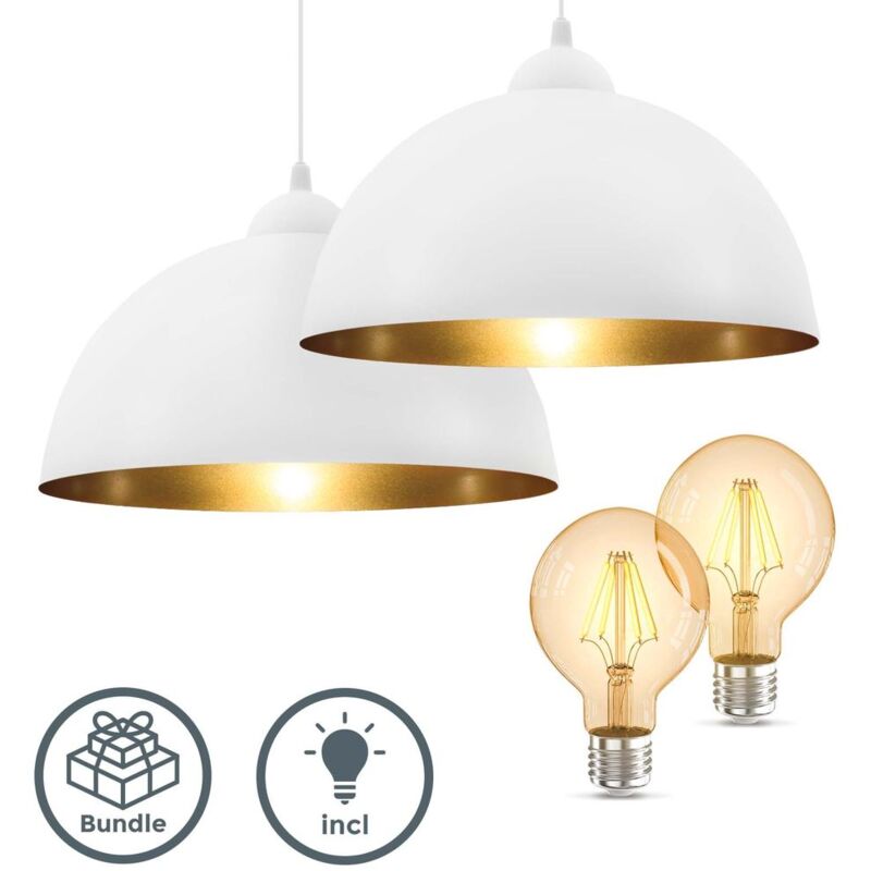 B.K.Licht LED Design Plafoniera / Pendente Auriga - Set di 2 - Attacco: E27 - Alogena / LED max 60 Watt - Tensione: 230V - Protezione: IP20 - Materiale: Metallo - Colore: bianco / oro - Diametro: 300 mm | Altezza max: 1.600 mm 2x B.K.Licht Design Lampada a sospensione vintage per lampadine E27 La variante elegante per i vostri interni: la lampada a sospensione in ottica bianco-oro si adatta meravigliosamente a diversi soggiorni. La lampada può essere collocata benissimo sopra un tavolo da pranzo o come accento in salotto. La lampada è anche molto adatta come decorazione. La lunghezza è regolabile in modo variabile, in modo da avere molte opzioni di design. ELEGANZA - La lampada a sospensione dal design vintage dona un tocco speciale ai vostri ambienti. Il design industriale è elegante e moderno. AMBIENTE - In salotto, sopra il tavolo da pranzo o sopra il bar di un ristorante, la lampada a sospensione a forma di semisfera crea un'atmosfera piacevole. ROBUSTA - La lampada a sospensione