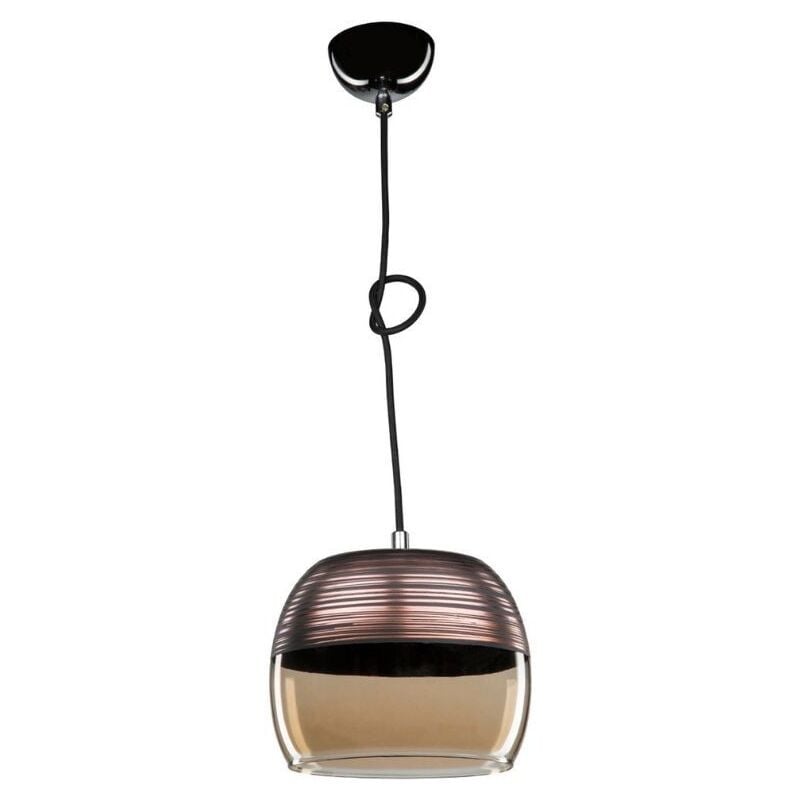 Lampada a sospensione diffusore bicchiere rovesciato Punto ASZ0856 Lampada a sospensione dallo stile moderno, ideale per illuminare ambienti contemporanei arredati con gusto. La lampada si caratterizza per la particolare forma di bicchiere rovesciato con decoro in rame nella parte alta e vetro fumè in quella bassa. Ideale in camera da letto, corridoio, ingresso, living, ma anche nei negozi. Caratteristiche: Materiale vetro. Forma bicchiere rovesciato con decoro in finitura rame. Vetro fumè. Altezza 84 cm. Larghezza 20 cm. Attacco lampadina 1 x E27 60 Watt. Facile da pulire Perchè scegliere la lampada a sospensione Punto? Illumina e arreda l'ambiente. Ha un design decisamente particolare. Facile da installare e da pulire. Altezza: 84 Larghezza: 20 Colore: rame nero Materiale: vetro Tipo Lampadina: E27 Contiene Legno: Si
