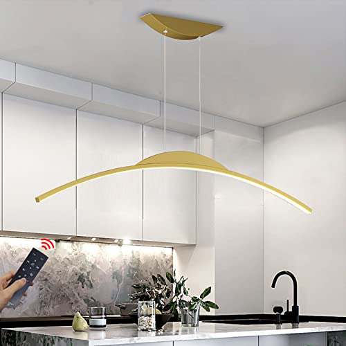 Lampada a Sospensione a LED Dimmerabile Lampada da Tavolo da pranzo Moderna con Telecomando con Design ad arco Lampadario Regolabile in altezza per Sala da Pranzo Soggiorno Cucina (80cm,32W, Oro)