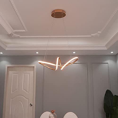 Lampada a Sospensione LED 40W Dimmerabile con Telecomando Lampadario D'oro Spirale Cromo, Luci Sospese Cucina Regolabile in Altezza per Camera da Letto Bar Sala Pranzo Salotto L60cm