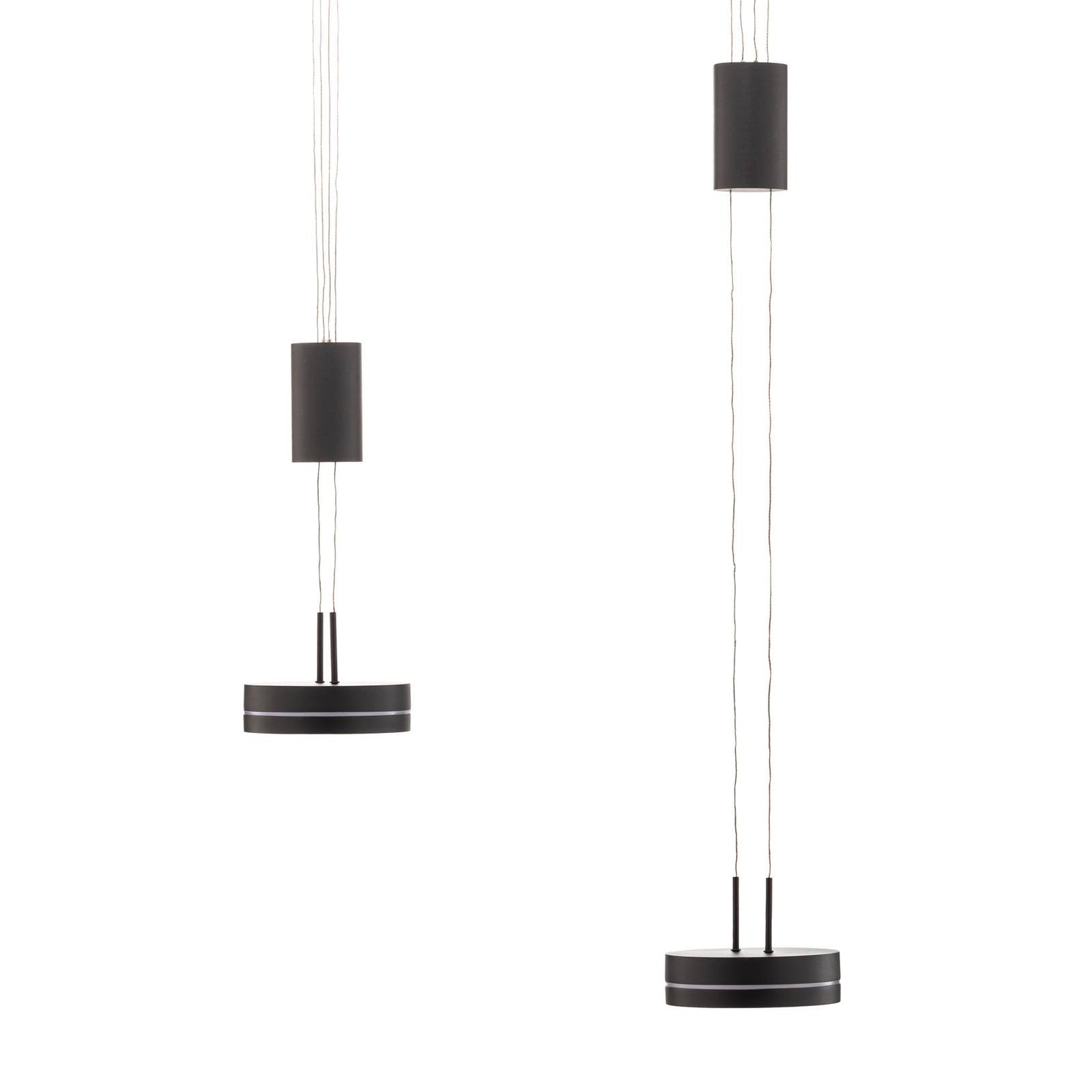 Lampada a sospensione Eilika LED a 2 luci, color antracite, con paralume regolabile in altezza e funzione di regolazione graduale della luminosità tramite interruttore a parete Questa lampada a sospensione LED è la scelta ideale per le vostre quattro pareti. Il modello Eilika crea un'atmosfera accogliente grazie al suo colore di luce bianco caldo e può essere dimmerato in tre fasi tramite l'interruttore della luce per un controllo individuale della luminosità. Con il suo design Mod, l'apparecchio fa un'ottima figura ed è ideale per la sala da pranzo o il soggiorno. L'apparecchio in antracite convince per la qualità del marchio Lindby ed è quindi sinonimo di design raffinato e di un'esperienza abitativa eccellente. Se necessario, il modello Eilika può essere regolato in altezza.