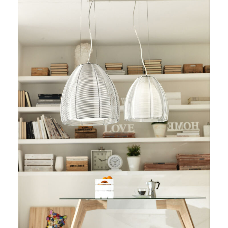 Lampada a sospensione elegante con paralume in metallo grigio, dimensioni 30x30x120 cm Aggiungi un tocco di eleganza alla tua casa con questa lampada a sospensione. Il paralume in metallo grigio conferisce un aspetto moderno e sofisticato, mentre le dimensioni di 30x30x120 cm la rendono perfetta per illuminare qualsiasi ambiente. Caratteristiche: Materiale: Paralume in metallo, cavo in metallo, rosone in metallo Colore: Grigio per il paralume, grigio per il cavo, grigio cromo per il rosone Dimensioni: 30 cm x 30 cm x 120 cm