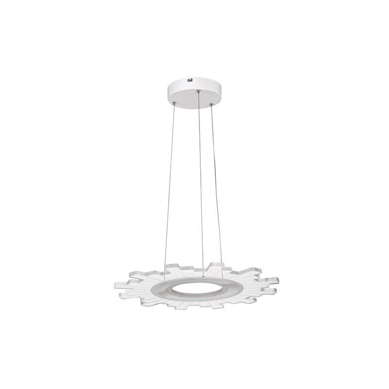 Consigliamo il lampadario Felicity a chi cerca una lampada per il proprio soggiorno o sala da pranzo decisamente diversa dall'illuminazione tradizionale. La forma di Felicity ricorda un sole infuocato, ma i suoi colori sono piuttosto tenui: il modello in metallo e acrilico è in una combinazione di colori trasparente e bianco. Questa plafoniera è dotata di una sorgente luminosa LED integrata con una potenza di 30 W, un'intensità di 2560 lumen e una temperatura di colore di 4000 K. La sorgente luminosa che emette luce bianca naturale donerà un effetto moderno ed elegante in ogni stanza. Il lampadario Felicity ha un diametro di 450 mm e la sua distanza dal soffitto è di 1465 mm. Questo modello moderno e spettacolare è coperto da una garanzia di 5 anni.Stile di illuminazione: ModernoDedicato agli ambienti: soggiorno, stanza di lavoroTemperatura colore: bianco naturaleFlusso luminoso della sorgente luminosa (lm): 2560Tecnologia LED: sìLivello di protezione IP: IP20Colore lampada: bianco