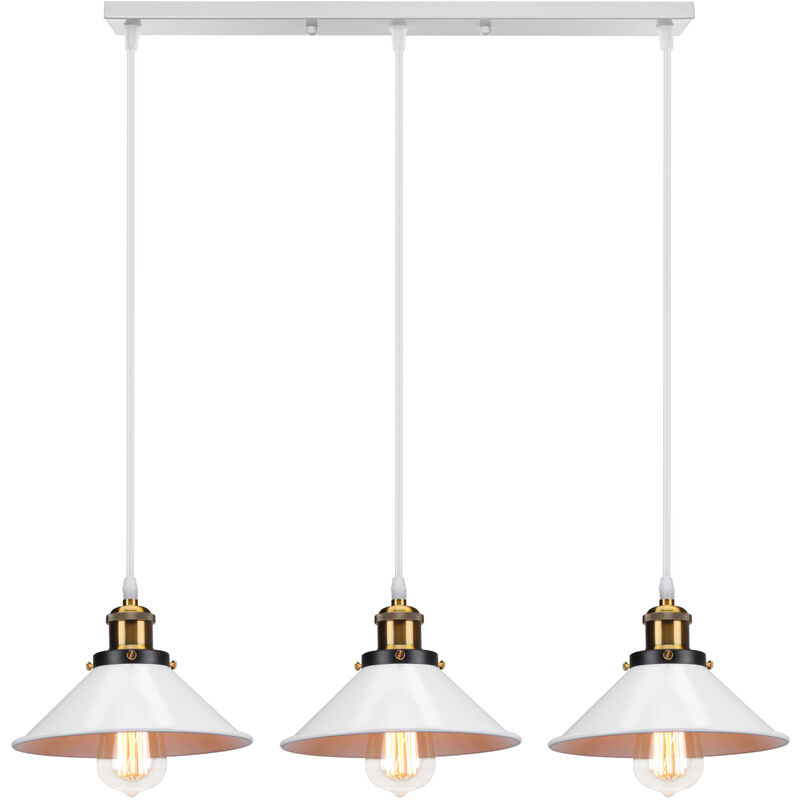 • Questa lampada a sospensione combina stile moderno e vintage. Il metallo bianco, il supporto in ottone e la finitura opaca conferiscono alla lampada a sospensione un aspetto retrò che si sposa bene con gli arredi moderni e non è mai in ritardo. • Superficie anticorrosione e antiruggine, verniciatura ad alta temperatura, non facile da sbiadire, qualità garanzia. • Adatto per sala da pranzo, soggiorno, camera da letto, cucina, ristorante, gallerie, bar, birreria, laboratorio di artisti, ufficio, caffetteria, bar, club, angolo lettura, sala artigianale, scale e altri usi di illuminazione. Specifiche: • Prodotto: Lampada a sospensione 3 luci • Colore: Bianco • Materiale: Metalli • Dimensioni: 22*16 cm • Diametro soffitto: 50 cm • Cavo regolabile 100 cm • Dimensioni consigliate della stanza: 10-15 mq • Voltaggio: 220 V, adatto a tutte le lampadine a spirale E27 (senza lampadina) • Illuminazione specifiche: Potenza: 25-60W (massimo 60W) Il pacchetto include: • 1 x lampada a sospensione a