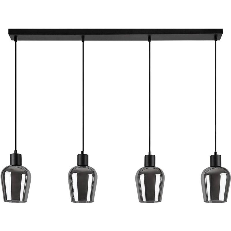 Lampada a sospensione FLORIAN E27 4x max.40W metallo nero, vetro colorato L: 95cm A: 150cm Ø13,5cm dimmerabile Dimensioni in mm: Larghezza: 950, altezza: 1500, diametro: 135 Peso in kg: 2,7 Tipo di lampadina/attacco: E27 Lampadina inclusa: NO Potenza in watt: 4x max.40W Grado di protezione: IP20 Dimmerabile: SI Materiale dell'alloggiamento: Metallo Colore dell'alloggiamento: nero Materiale del vetro/paralume: Vetro Colore vetro/paralume: colorato