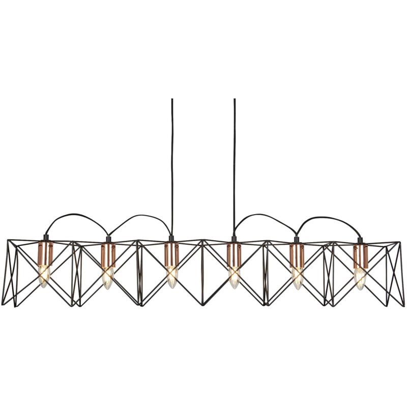 Collezione Antea DESIGN MODERNO E RAFFINATO Aggiungi uno stile istantaneo con questa lampada a sospensione a barra con struttura in filo di rame e nero opaco Anthea a 6 luci. Le 6 luci brillano verso il basso dai portacandele in stile candela e dall'abito posizionato in una cucina o in una sala da pranzo. La combinazione di design in filo e rame è molto di tendenza.
