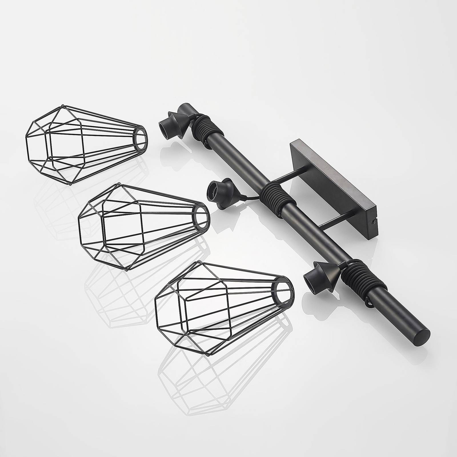 Lampada a sospensione a 3 luci Remus con paralumi a gabbia in nero Questa lampada a sospensione è ideale per illuminare un tavolo o un bancone. La lampada è dotata di tre paralumi, tutti in acciaio nero, che ricordano una gabbia. Das crea un bellissimo gioco di luci e ombre nella stanza ed è ideale per completare lo stile vintage. Le sorgenti luminose sono molto visibili e devono quindi essere scelte con un occhio di riguardo al look, in modo che si integrino bene con il design generale. In questo caso si consigliano lampade a filamento o rustiche, che hanno un aspetto nostalgico di filamento di carbonio e sono disponibili anche in colori di luce particolarmente caldi.
