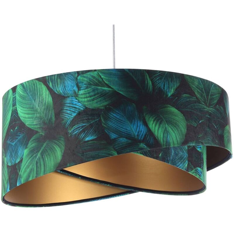Lampada a sospensione GALAXY E27 max. 1X60W tessuto in velluto stampato su PVC, giungla, interno oro H: 105cm Ø50cm dimmerabile Dimensioni in mm: Altezza: Altezza totale: 1050;